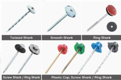 屋顶钉又称伞形屋顶钉。材质采用优质Q195和Q235钢丝。表面处理可选镀锌、黑色、黄色、白色,钉杆类型有螺旋杆、平杆、槽杆、直杆、扭杆等。